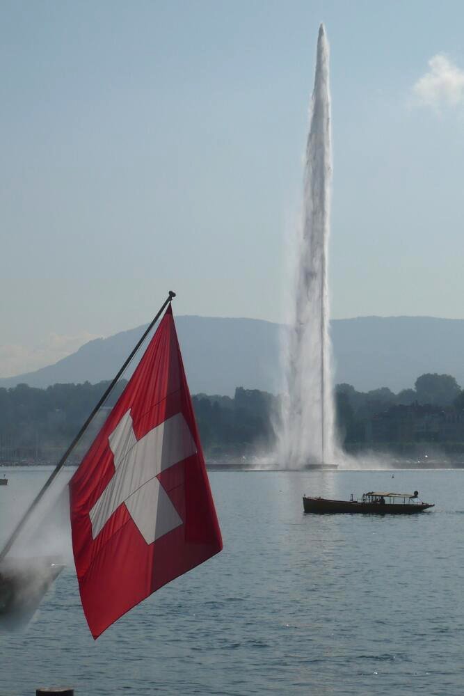 Le fameux jet d'eau de Genève. 148 mètres - 200 km/h - 500 L/s.