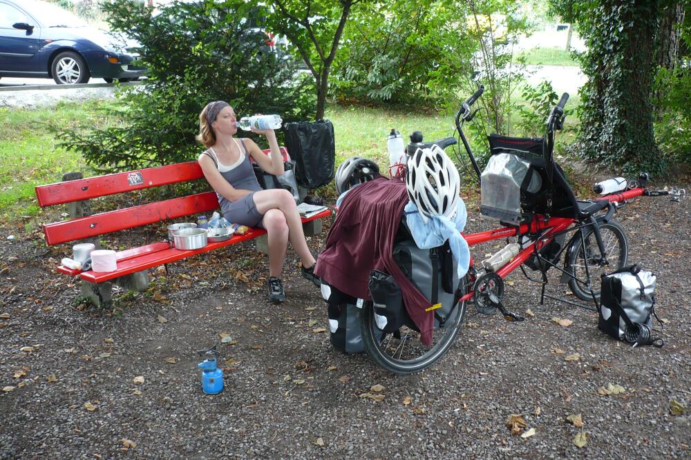 Après un bon repas de pâtes pesto, on (Elodie) décide de quitter la vallée ennuyeuse pour remonter vers le Jura! Youpie!