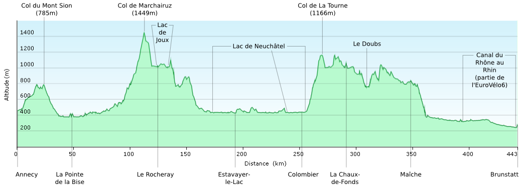 Profil du parcours (en haut : quelques repères, en bas : les campings) :